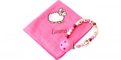 Grâce à ses nombreuses couleurs et au nom brodé (max: 10 symboles) votre doudou et votre attache-tétine seront unique!